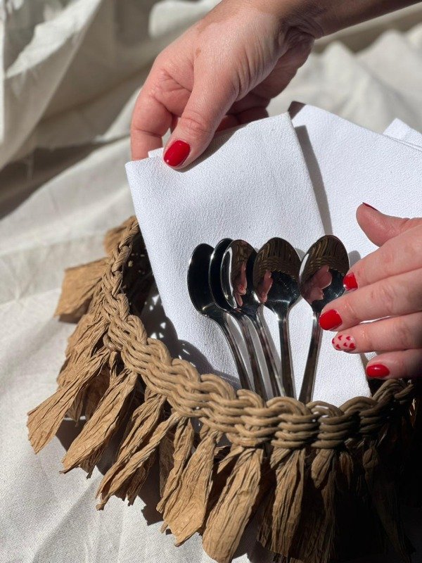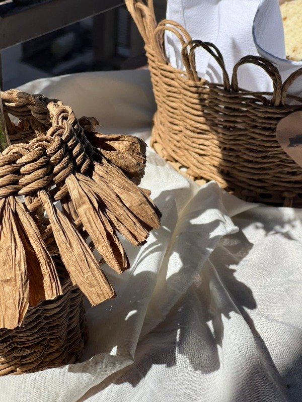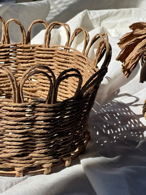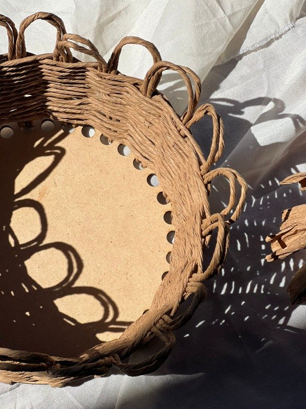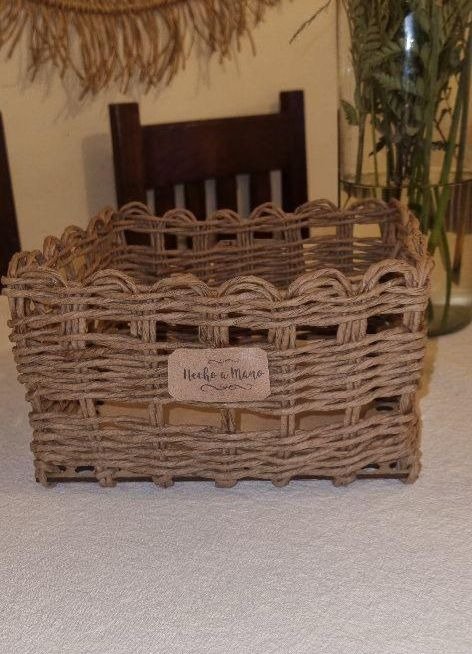 Cestería realizada en hilo kraft de 4mm color natural con base mdf.