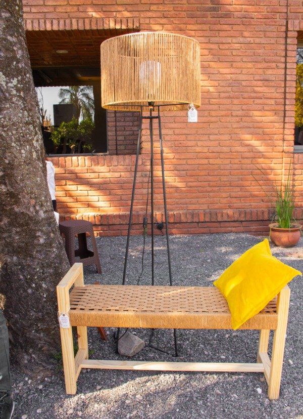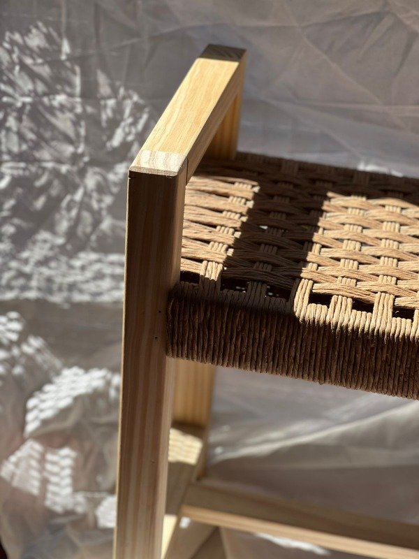 Confeccionado en madera de pino laqueada, encordado con hilo kraft de 4mm en color natural.